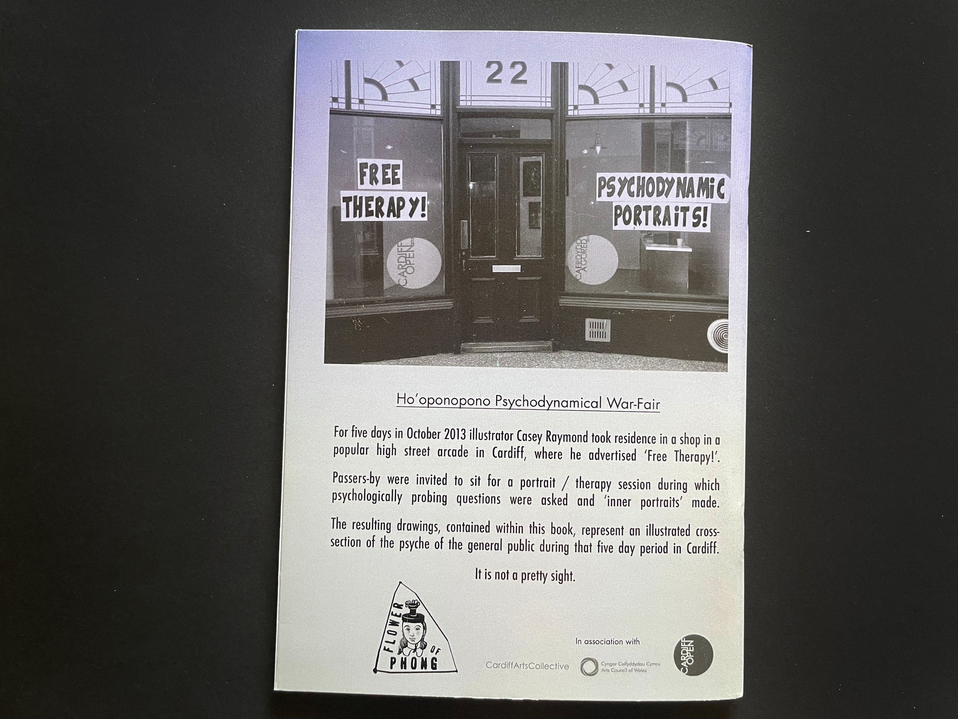 "For five days in October 2013 illustrator Casey Raymond took residence in a shop in a popular high street arcade in Cardiff, where he advertised 'Free Therapy!'