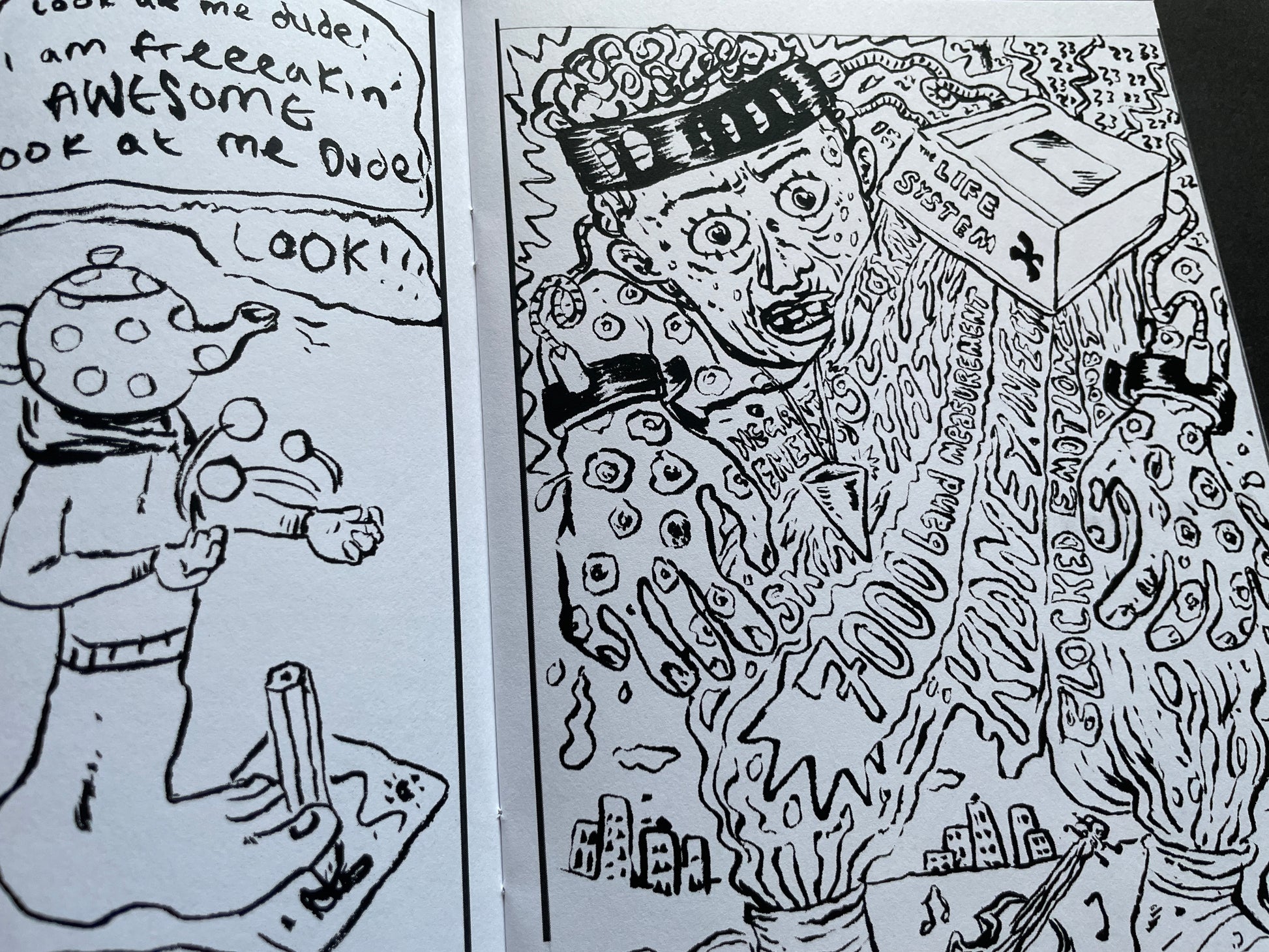 The resulting drawings, contained within this book, represent an illustrated cross-section of the psyche of the general public during that five day period in Cardiff.